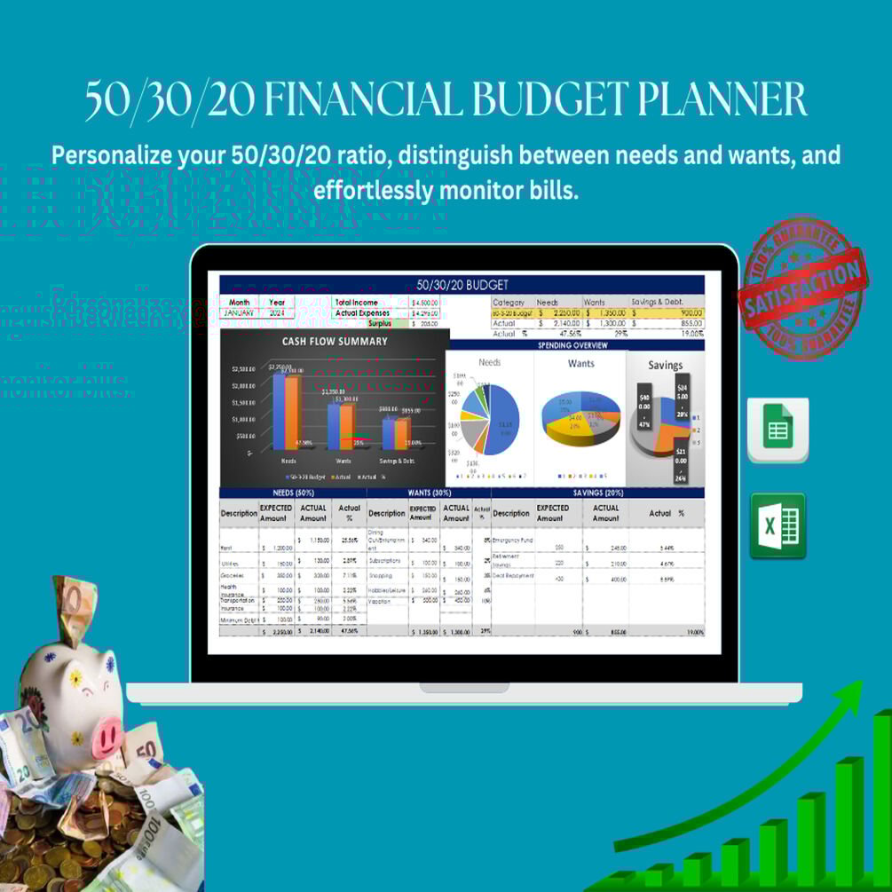 Optimized Finances: 50/30/20 Monthly Budget Spreadsheet & Planner – Excel & Google Sheets Templates for Seamless Digital Budgeting