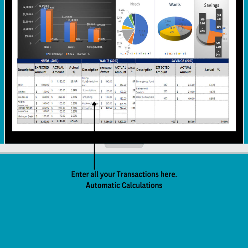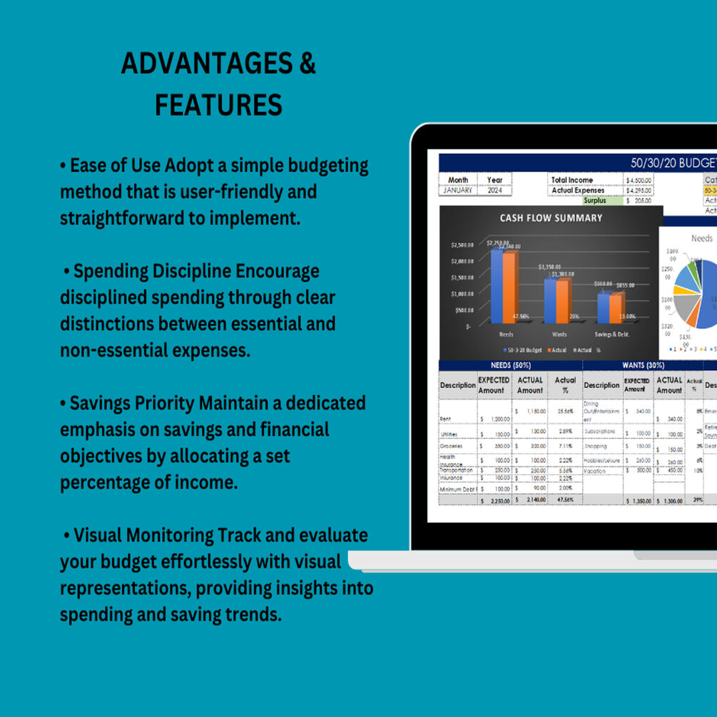 Embark on a journey of financial intentionality with our Monthly 50/30/20 Budget spreadsheet! Tailored for simplicity and effectiveness, this tool uses the highly recommended 50/30/20 budgeting method. Allocate your income wisely to Needs (50%), Wants (30%), and Savings & Debt (20%) effortlessly. This visually appealing, user-friendly spreadsheet includes only the essentials. Just input your transactions, and watch as everything is calculated automatically. Jumpstart your personal finance success – start budgeting smart today.