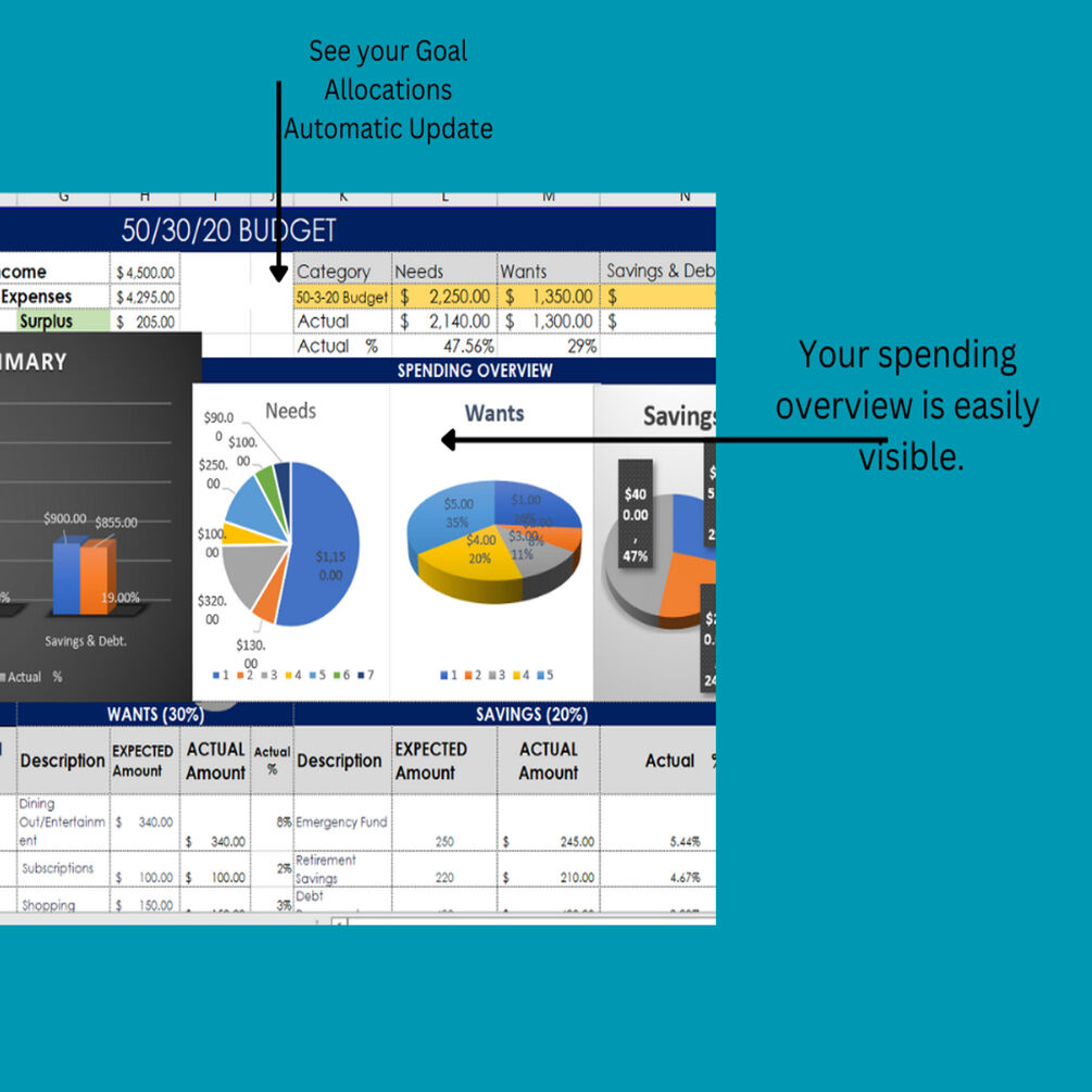 • Fully Customize the 50/30/20 Ratio (Use the 70/20/10 rule with the same spreadsheet!)