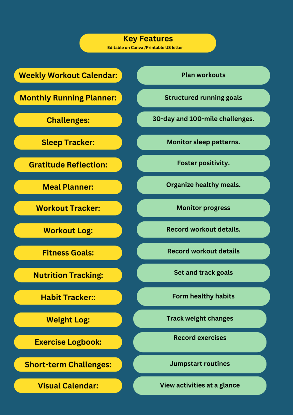 Stay Organized: Keep all your fitness-related information in one convenient place with our comprehensive fitness logbook, providing a clear snapshot of your progress over time.