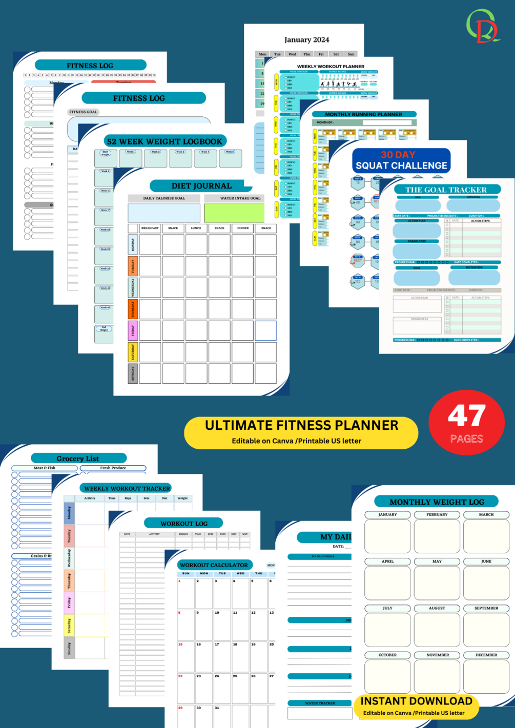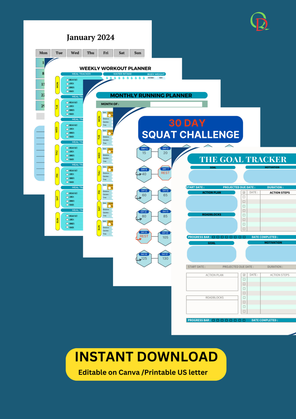 Introducing our Ultimate Fitness Planner, your all-in-one solution for achieving your health and fitness goals with ease and efficiency. Whether you're a seasoned athlete or just starting your fitness journey, this comprehensive planner has everything you need to plan, track, and achieve success.