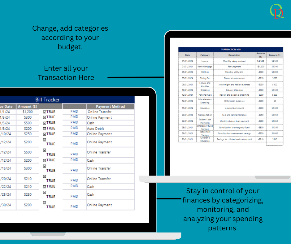 • This is a fully editable GOOGLE SHEETS ZERO-BASED BUDGET SPREADSHEET to help you organize your life, achieve your goals and get the most out of your expensive time! Intuitively and easily customize in Google Sheets (you need a free Google account) to save lots of time and money. USER-FRIENDLY Spreadsheet Templates to manifest and track your ideal lifestyle, health, fitness, finances, goals, projects and productivity in just a few steps, leaving you with hours of free time to focus on other important things! Simply DOWNLOAD, EDIT and get started right away! PRODUCT INFORMATION FILE: PDF with instructions and links to access and edit the spreadsheet template in GOOGLE SHEETS. YOUR PURCHASE INCLUDES • A complete ZERO BUDGET dashboard. • Expense Tracker • Bill tracker • Savings Tracker • Transaction Log • Smart Calendar • Automatic calculations. • Colors may vary slightly depending on the computer monitor you use. • You can always edit your template as needed. NOTE This is a DIGITAL TEMPLATE file. No physical product will be shipped and processing will be handled by the buyer. Because this is a digital file, we cannot offer returns or exchanges on downloadable items. Please ask all questions before purchasing your item.All designs are ©QuirkdigiSheets. HOW IT WORKS? • Add to cart and BUY. • Check purchases and reviews on Raket. • DOWNLOAD attached PDF files with a link to the template in Google Sheets. • You need a free Google account to use the template. • CLICK “Make a Copy” or Download and your template will open in your browser.